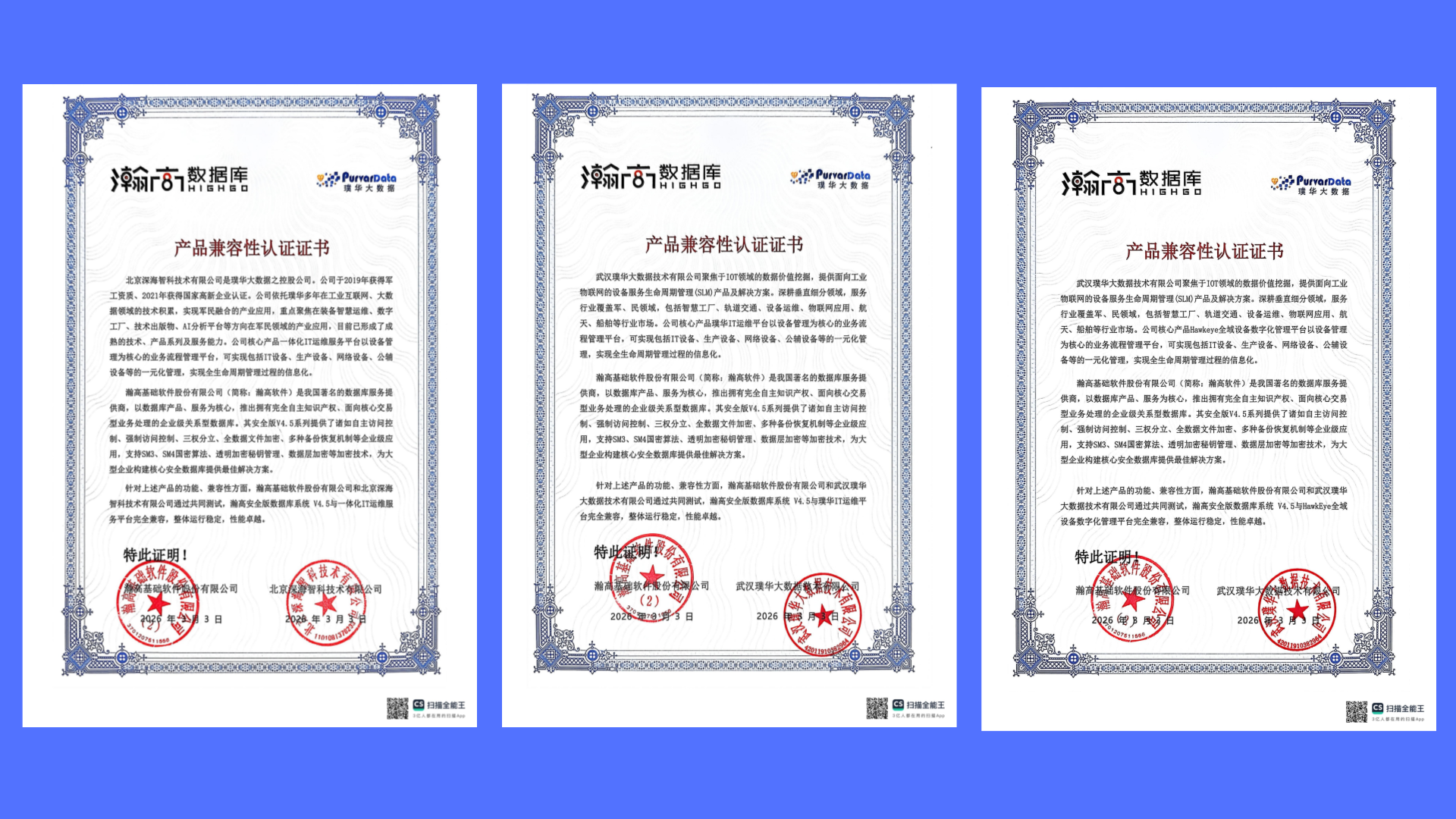 近日,武汉璞华大数据技术有限公司(以下简称“璞华大数据”)及其旗下核心产品——HawkEye全域设备数字化管理平台、璞华IT运维平台,以及控股公司北京深海智科技术有限公司的一体化IT运维服务平台,与瀚高基础软件股份有限公司(以下简称“瀚高软件”)旗下瀚高安全版数据库系统V4.5完成了全面兼容性测试。三方共同出具产品兼容性认证证书,标志着璞华大数据在工业物联网数据安全与国产化适配领域迈出了坚实一步,也为行业客户提供了更稳定、更安全、更高效的数字化解决方案。